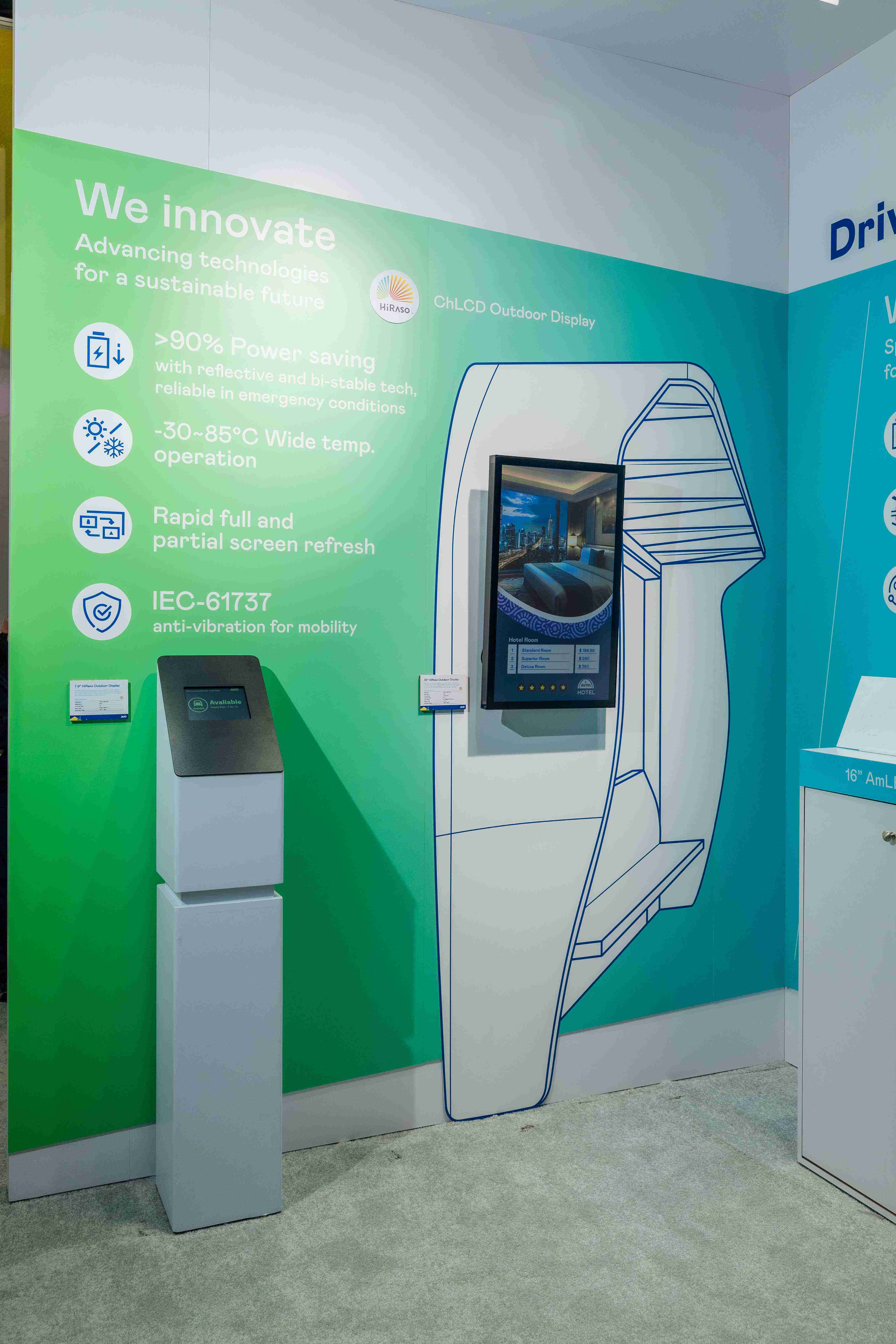 HiRaso胆固醇液晶显示器运用反射环境光线的方式,,呈现影像显示时零耗能的环保省电诉求,,,光线愈强愈能呈现绝佳的色彩饱和度及显示效果,,,,同时在摄氏-30度至85度间宽温的使用优势,,为户外电子看板的新首选。。。。