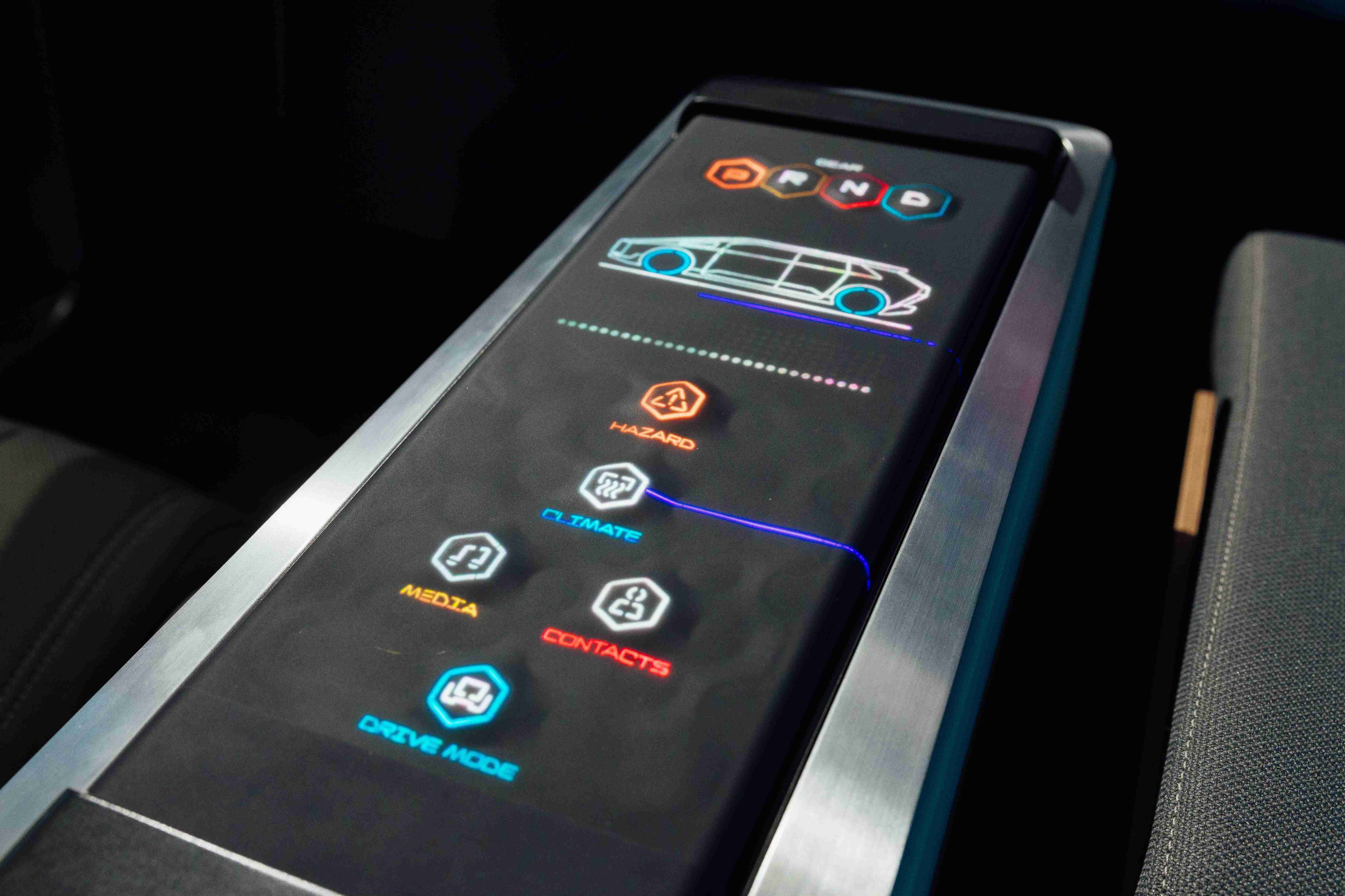 多变形态中控显示(Morphing Center Control)拥有动态变化的表面,,平时常态显示车辆功能,,,,进一步操作时,,则会隆起成为3D 按钮,,,并在触控时以震动回馈,,,,以精细的操作开创人机互动新境界。。。。 ![]()
