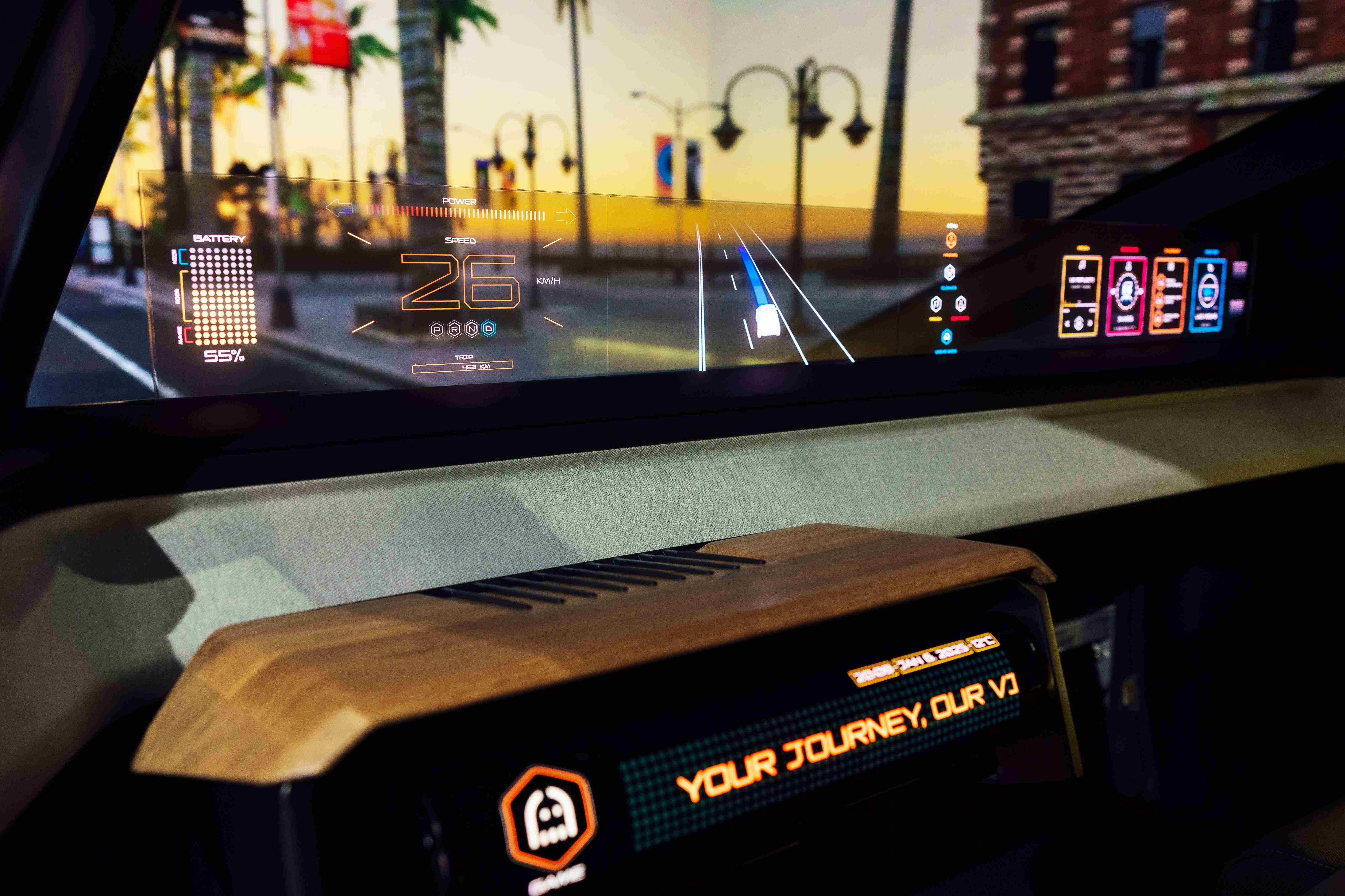 隐藏式智驾介面(Foldable Cruise Pilot)在不同模式下可以切换显示方式,,,,在手动驾驶模式时,,显示器可以在半收合状态下,,仍呈现所需资讯;自驾模式时,,,,显示器可以完全展开,,满足不同的多媒体娱乐需求。。。 牛牛游戏Smart Cockpit 2025 在车头及车尾搭载合作伙伴Ennostar开发的互动式矩阵显示器(Interactive Matrix Display),,,,其突破传设计框架,,,利用优化的光源整合技术,,提供更高亮度与对比度的显示效果,,,,营造驾车者个性化风格并传递讯息。。。