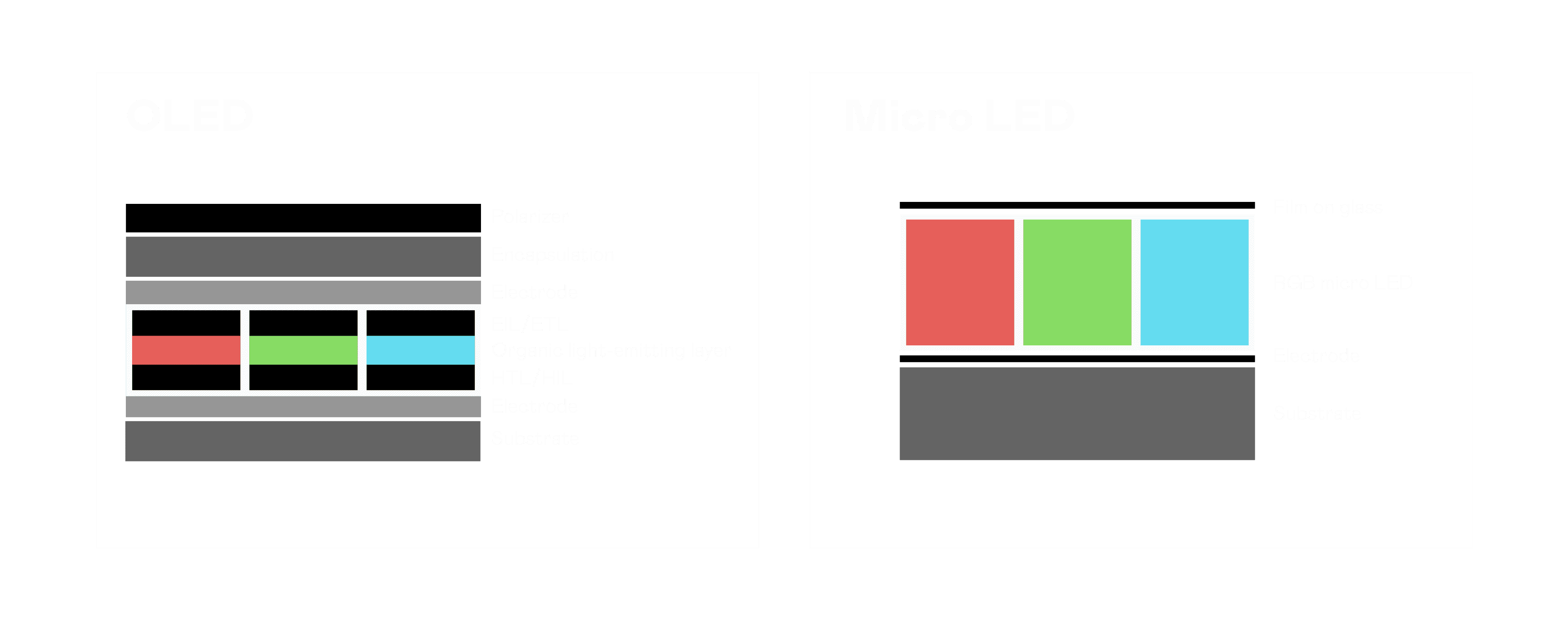 以 LED 做为显示画素,,,,可让 LED 的发光效率发挥到极致,,从而让显示器具备优异的亮度表现,,,不论是在户外或室内,,,,均具备出众的显示效果。。同时,,,与使用有机材料的 OLED 相比,,,,LED 具备更稳定、、、、寿命更长的特性,,,,不仅不会有画面烙印问题,,,而且更不容易出现故障、、、坏点。。