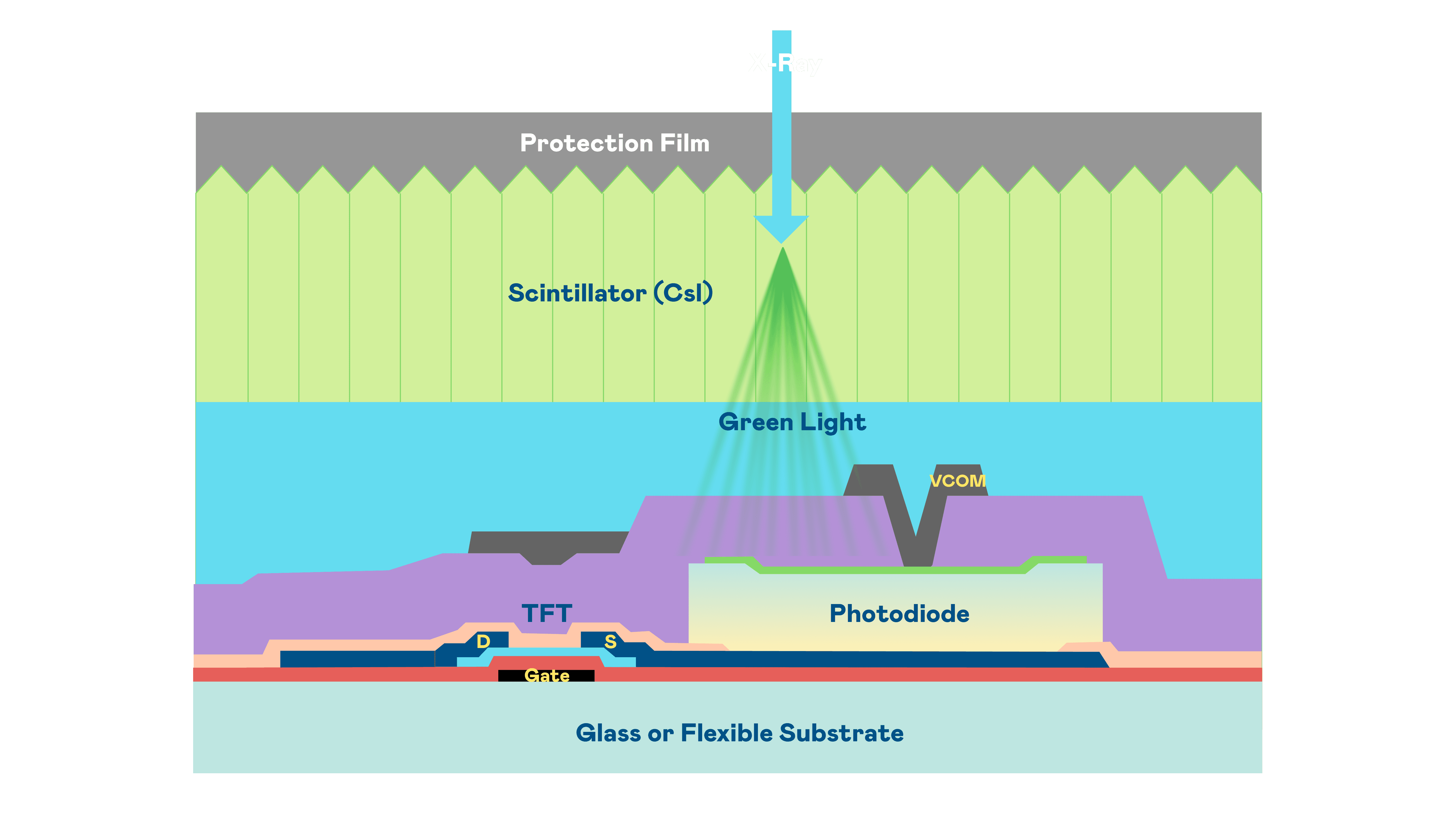 牛牛游戏的X光影像感测阵列使用薄膜电晶体 (TFT) 作为每个像素的读取开关,,,,搭配光电二极体(Photodiode)的光电转换元件,,,用以感测X光影像讯号。。。